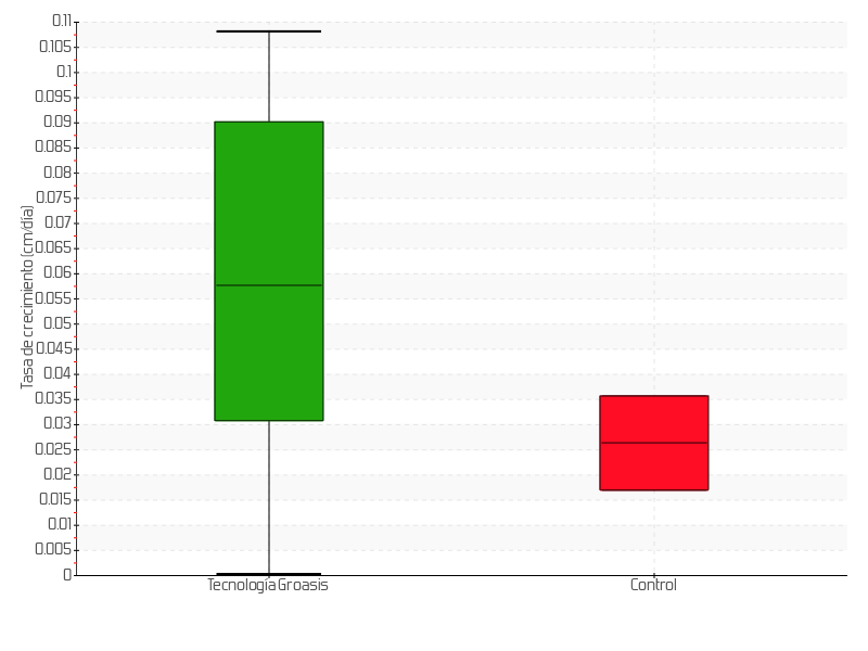5 | 24/09/2019 | 52.00 cm | 21.00 cm | 0.2727 cm/día | 30.00 cm |