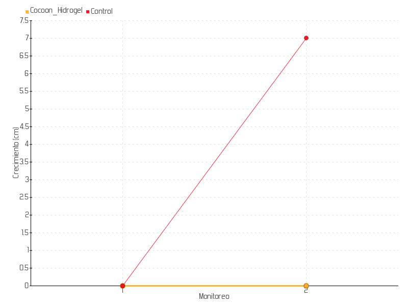 | Monitoreo | Fecha | Altura | Crecimiento | Tasa de crecimiento | Crecimiento total |