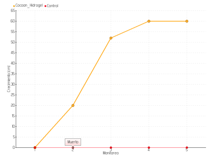 | Monitoreo | Fecha | Altura | Crecimiento | Tasa de crecimiento | Crecimiento total |