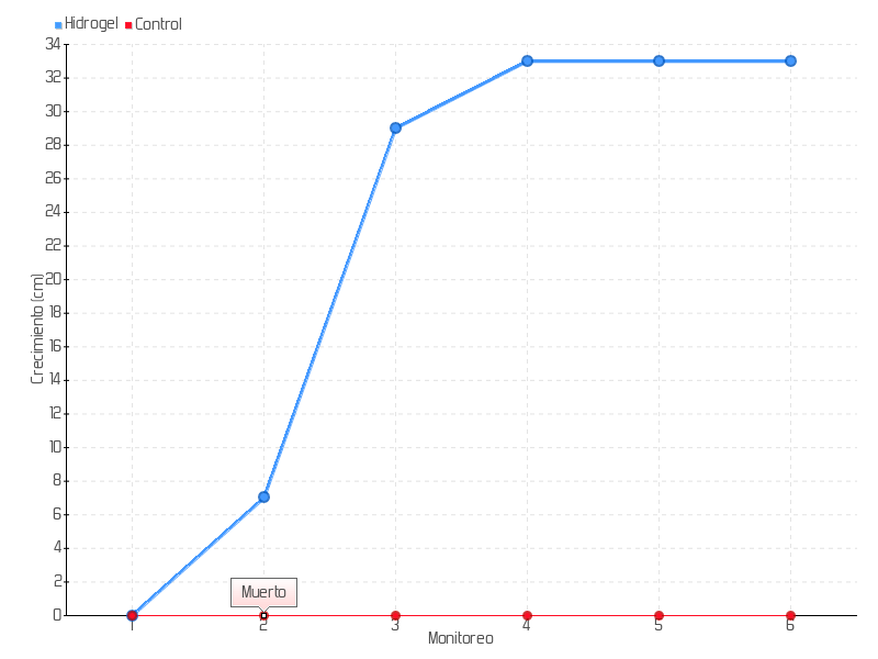 | 2 | 26/02/2019 | 36.00 cm | 7.00 cm | 0.0476 cm/día | 7.00 cm |