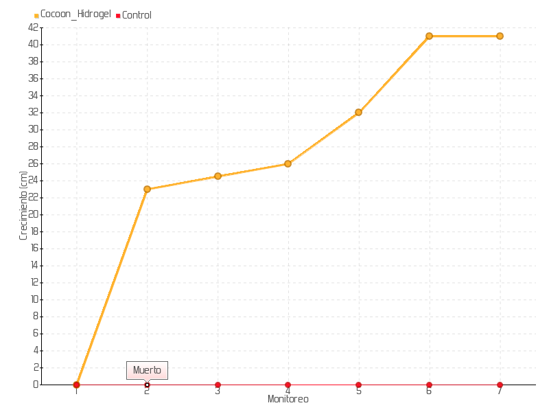 6 | 25/05/2021 | 70.00 cm | 9.00 cm | 0.1286 cm/día | 41.00 cm |
